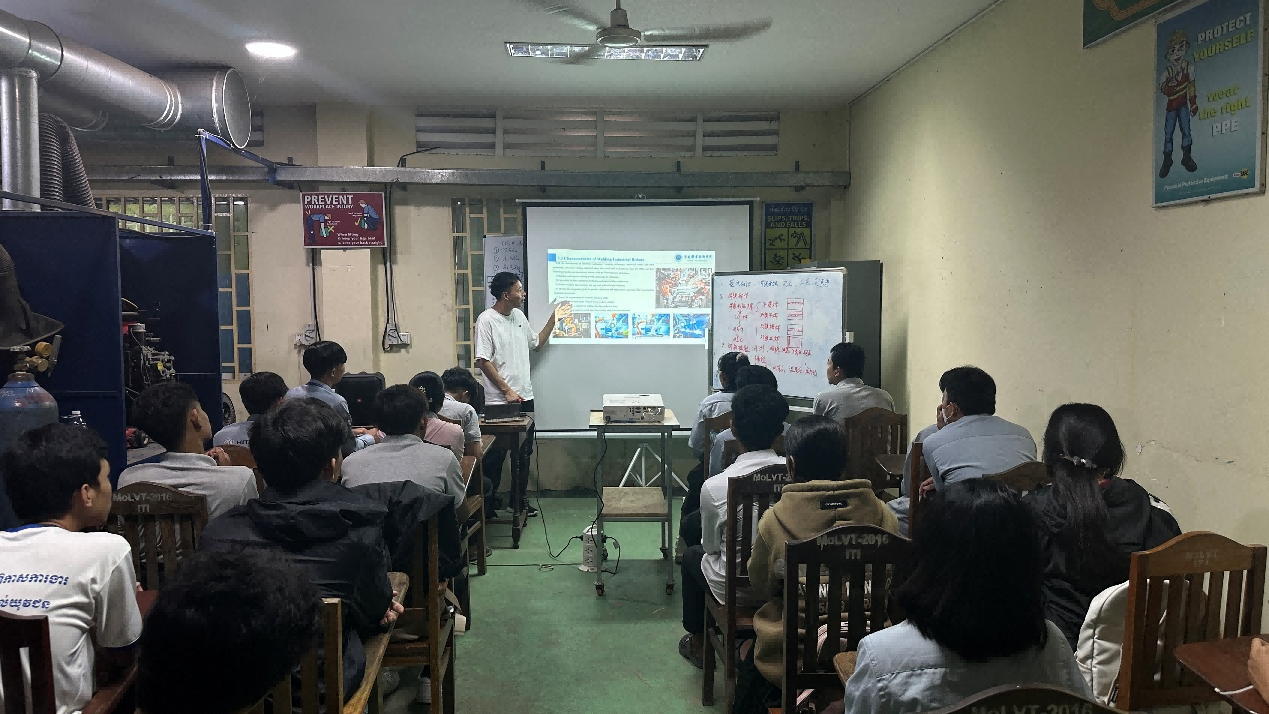yl6776永利集团官网王亚强老师负责智能焊接技术培训模块。50天的培训中,他克服语言沟通不畅、生活不便等种种困难,花费大量时间精心备课,理论课上融入简单易懂又贴近实际的案例进行通俗易懂地讲解,实操课上手把手教导学生掌握每一个焊接要领。王亚强老师的倾心付出,使柬埔寨学生获得宝贵的“中文+”复合型技术技能,同时,也给柬方职业院校输送了智能焊接职业培训标准和经验,进一步深化了中柬职业教育国际合作与友谊。